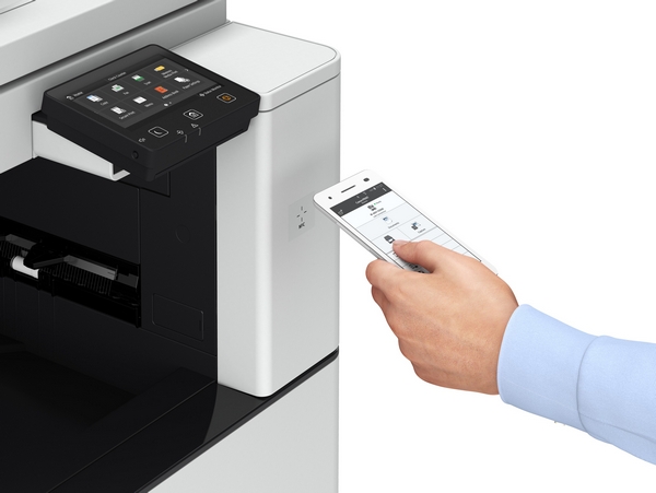 Φωτό στην κορυφή της σελίδας: Ο imageRUNNER C3025i συνδέεται με smartphone μέσω σύνδεσης NFC.