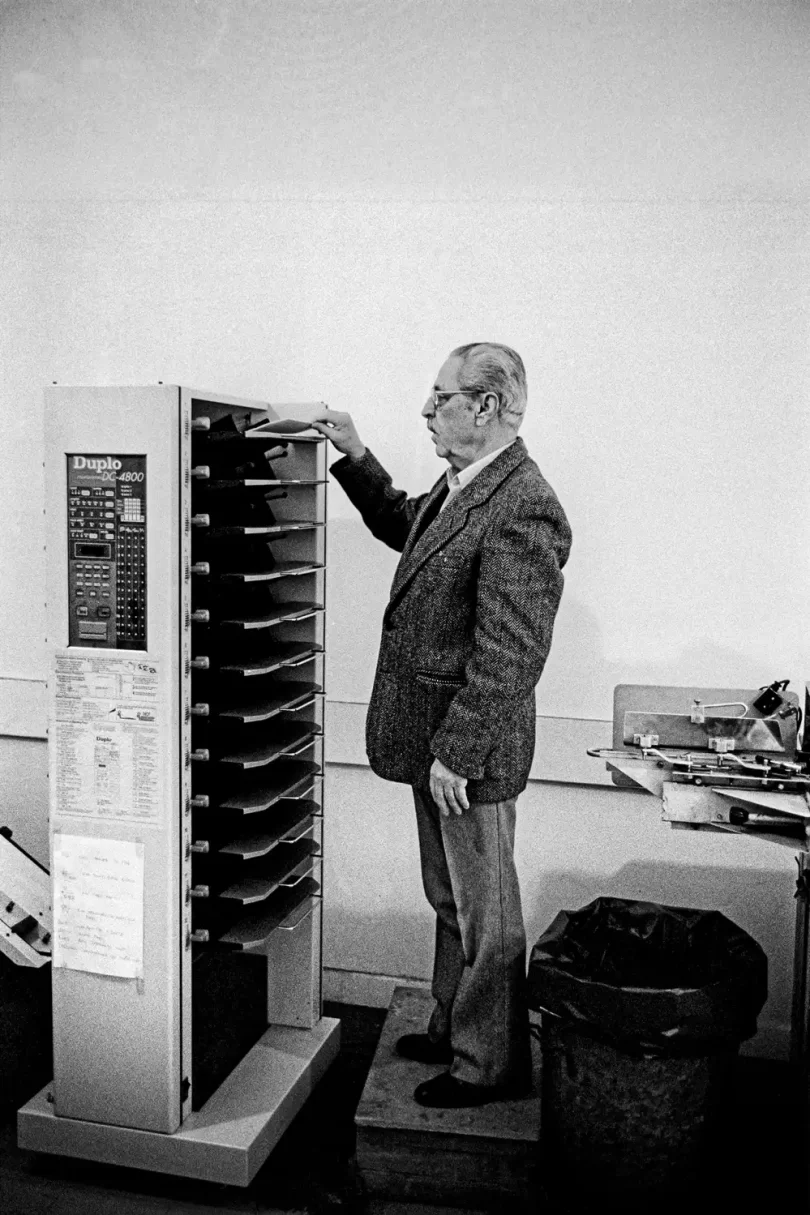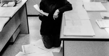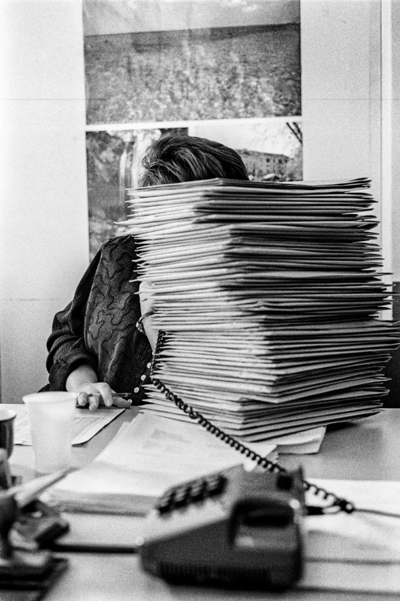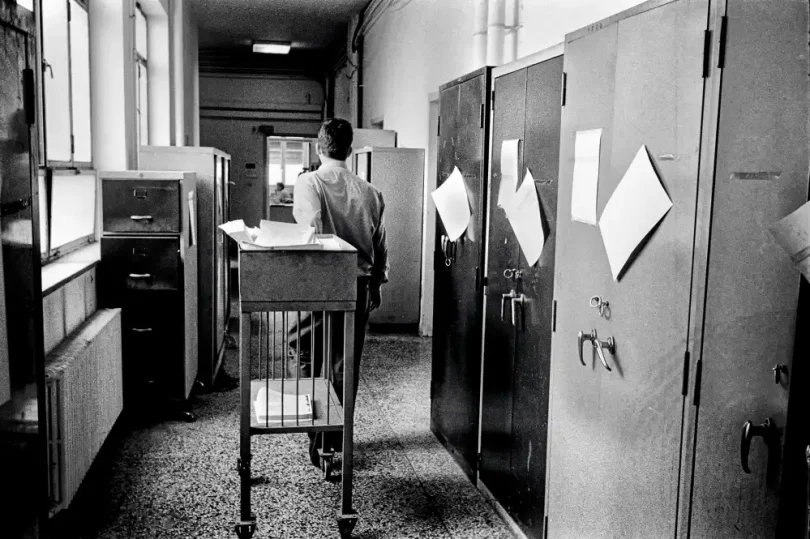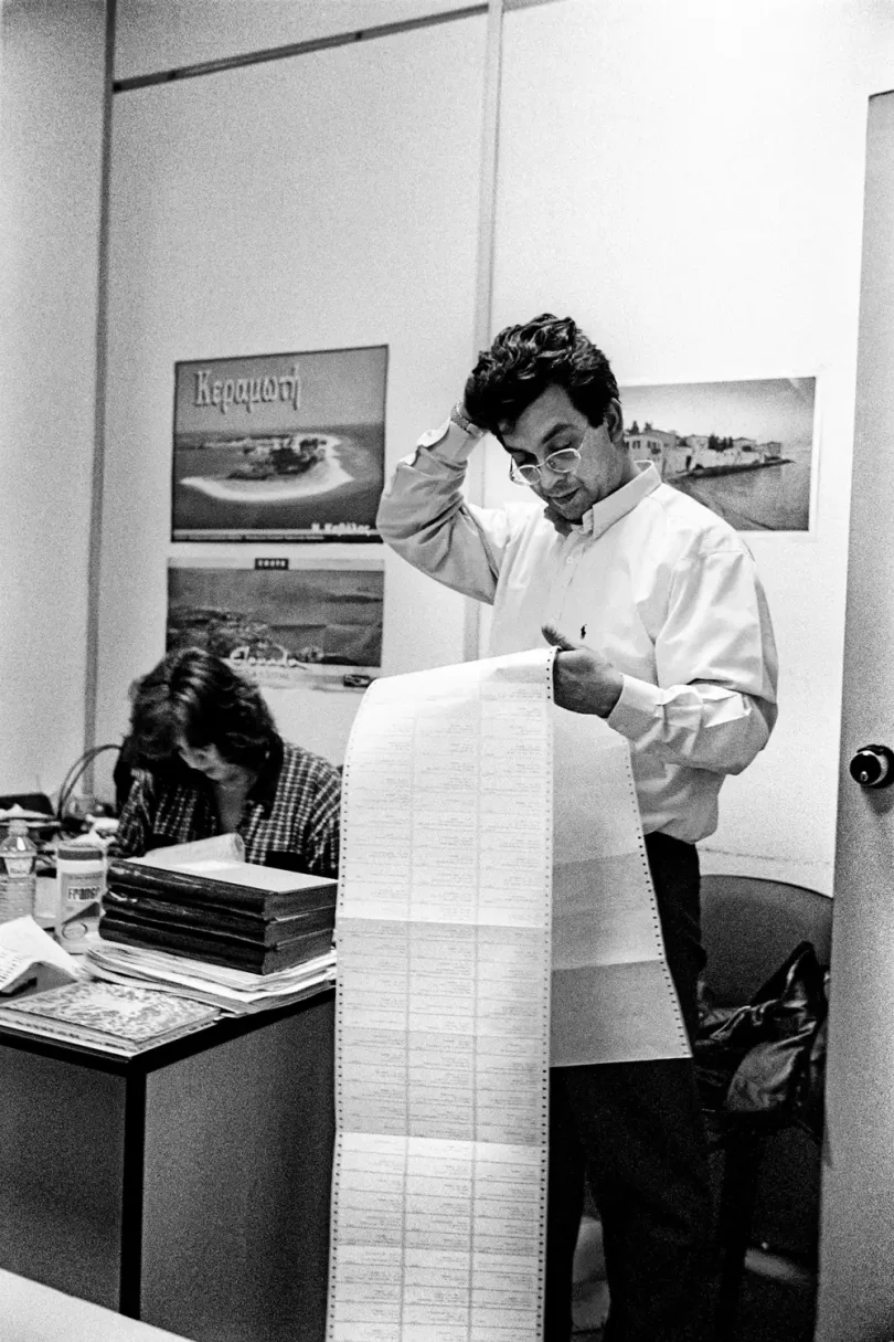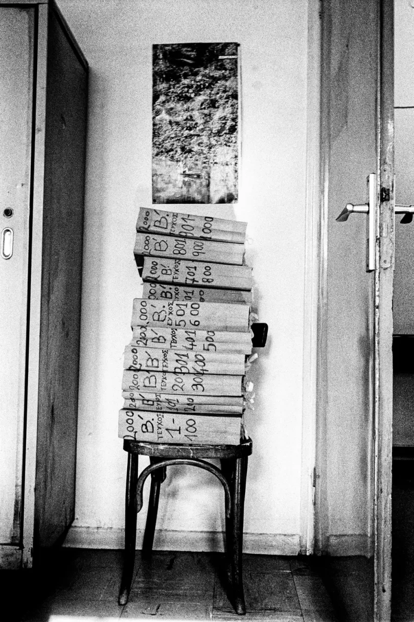 Μέσα από τις ασπρόμαυρες φωτογραφίες του αναδύεται ένας κόσμος γραφείων γεμάτων φακέλους, φθαρμένων επίπλων και υπαλλήλων παγιδευμένων ανάμεσα στη ρουτίνα, την κόπωση και τις μικρές χαρές της ημέρας. Πρόκειται για μια τρυφερή, αλλά και αιχμηρή ματιά στον ανθρώπινο πυρήνα της δημόσιας υπηρεσίας, σε έναν κόσμο που σιγά-σιγά χάνεται. Η σειρά έμεινε αθέατη για πάνω από είκοσι χρόνια, μέχρι την επανεμφάνισή της στα φεστιβάλ Photometria (Ιωάννινα, 2022) και Thessaloniki Photobiennale 2023. Σήμερα, οι εκδόσεις Hyper Hypo παρουσιάζουν ένα σκληρόδετο φωτογραφικό λεύκωμα υψηλής αισθητικής, συνοδευόμενο από κείμενο του Ηρακλή Παπαϊωάννου, που τοποθετεί το έργο στο ευρύτερο κοινωνικό και ιστορικό του πλαίσιο.