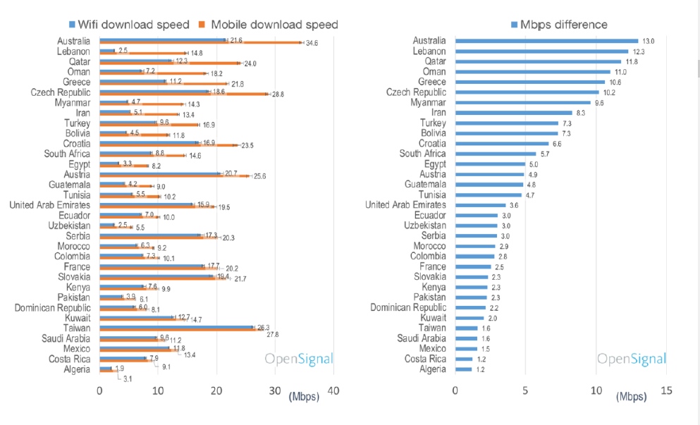 Η έρευνα αναφέρεται στο μέσο όρο των συνδέσεων και όπως φαίνεται η διαφορά δεν είναι μικρή ανάμεσα στις download ταχύτητες των Mobile και Wifi δικτύων.
