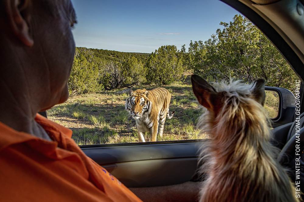 CONTEMPORARY ISSUES – 2ο ΒΡΑΒΕΙΟ, STORIES: “The Tigers Next Door” © Steve Winter, ΗΠΑ, για το National Geographic / Ο ιδιοκτήτης Pat Craig και ο σκύλος του Little Bit στο The Wild Animal Refuge (Κολοράντο, ΗΠΑ) στις 12 Ιουλίου 2019. Το αναγνωρισμένο αυτό καταφύγιο σαρκοφάγων έχει έκταση 4.000 εκταρίων για ζώα που έχουν διασωθεί και δεν είναι προσβάσιμα από το κοινό.