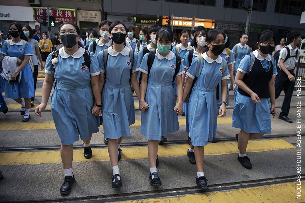 GENERAL NEWS – 1ο ΒΡΑΒΕΙΟ, STORIES: “Hong Kong Unrest” © Nicolas Asfouri, Δανία, Agence France-Presse / Μαθήτριες διασχίζουν ένα δρόμο για το σχολείο στο Χονγκ Κονγκ, μετά τη συμμετοχή τους σε μια διαδήλωση “ανθρώπινης αλυσίδας”, στις 12 Σεπτεμβρίου 2019.